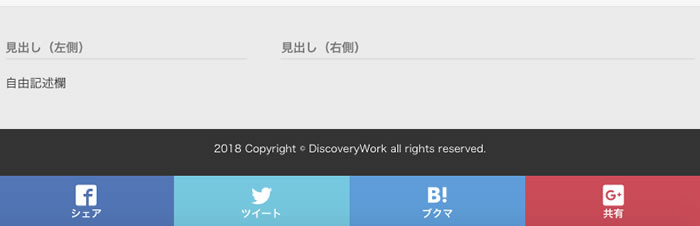 WEBページのフッター(最下部)に、設定したソーシャルボタンが表示されました。