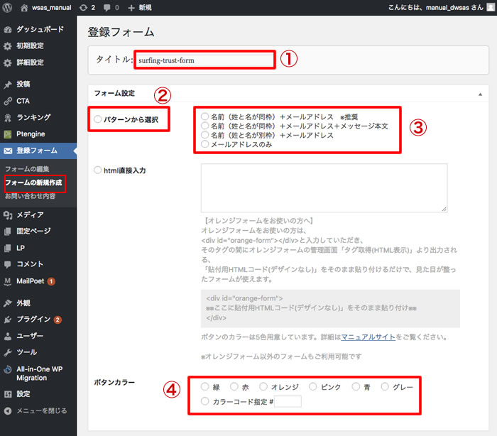 ①登録フォームのタイトルを入力して下さい