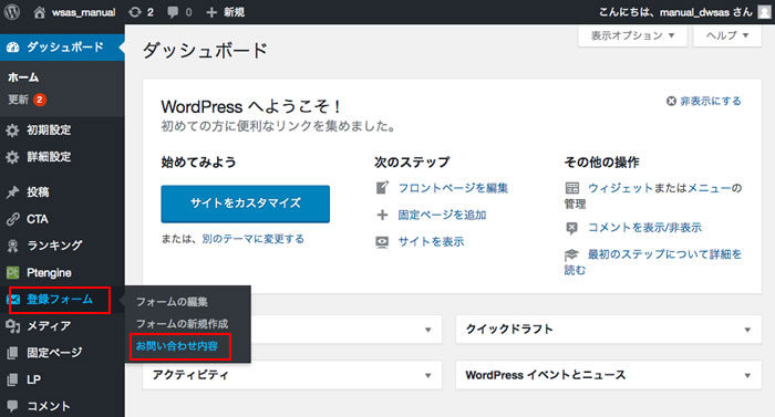 ◆サイドメニューの「登録フォーム」を選択