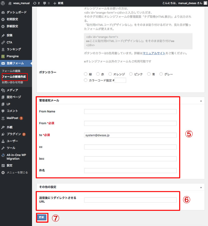 ⑥ユーザーが登録ボタンを押した後に、飛ばしたいページがあれば、そのページのURLを入力してください。