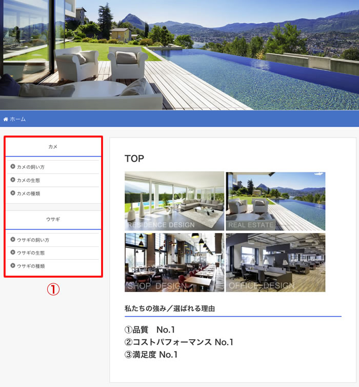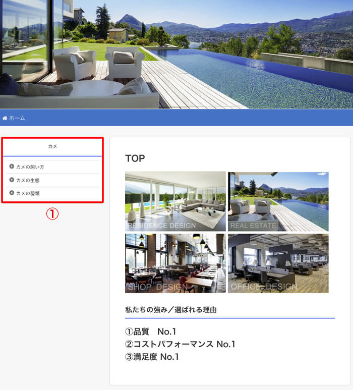 ①「サイドバー」に選択した「ナビゲーションメニュー」が表示されました。